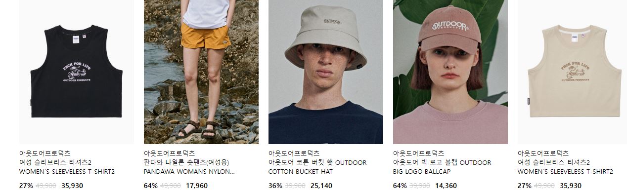 아웃도어프로덕츠 다양한 제품을 할인 판매하네요.