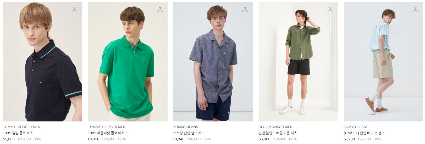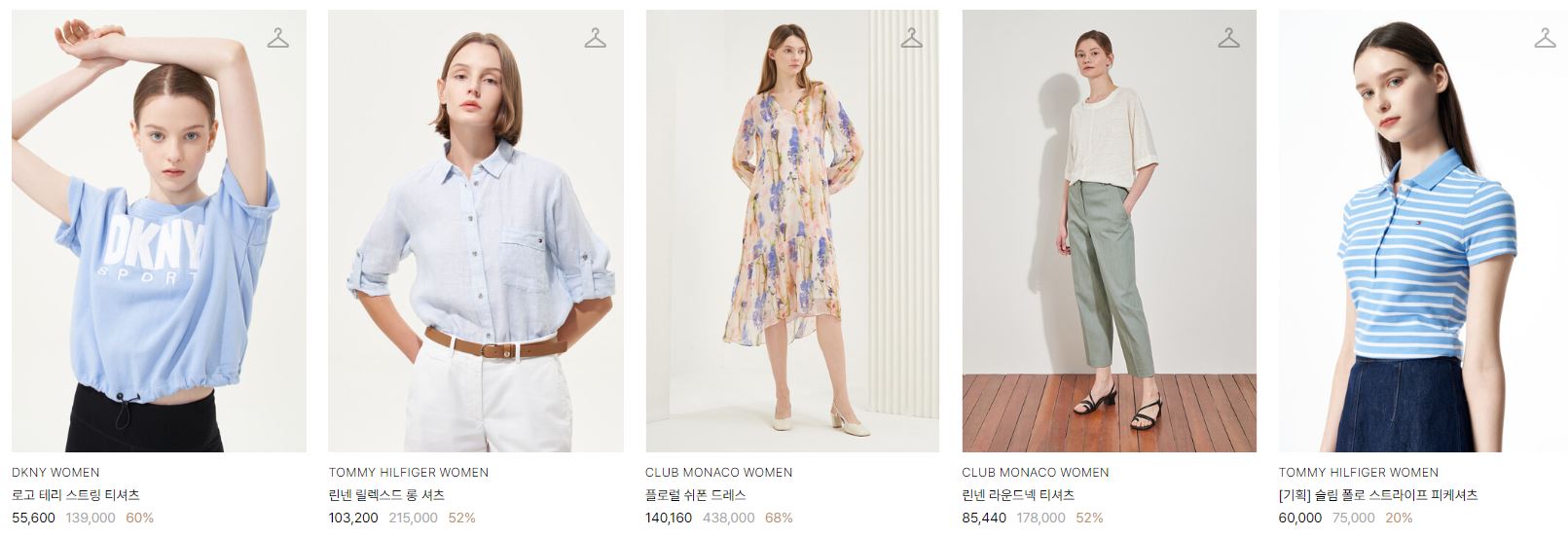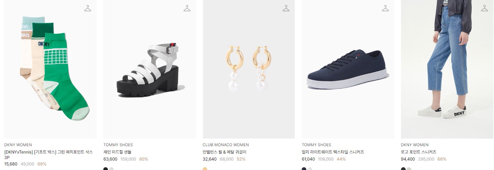 할인 품목 : 티셔츠, 원피스, 신발 등