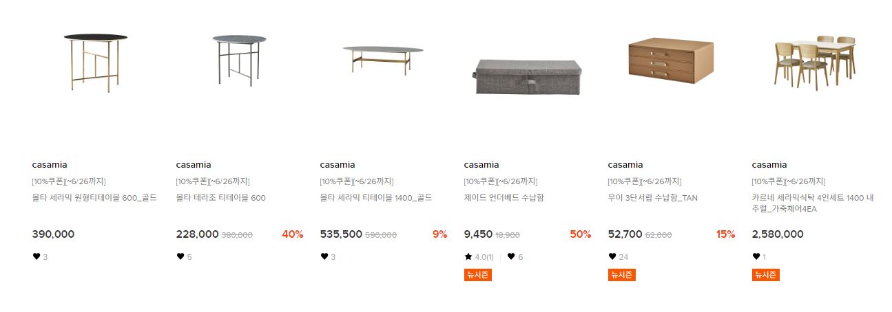 까사미아 다양한 제품을 할인 판매하네요.