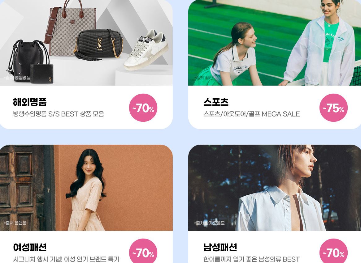 할인 품목 : 의류, 가방, 신발 등