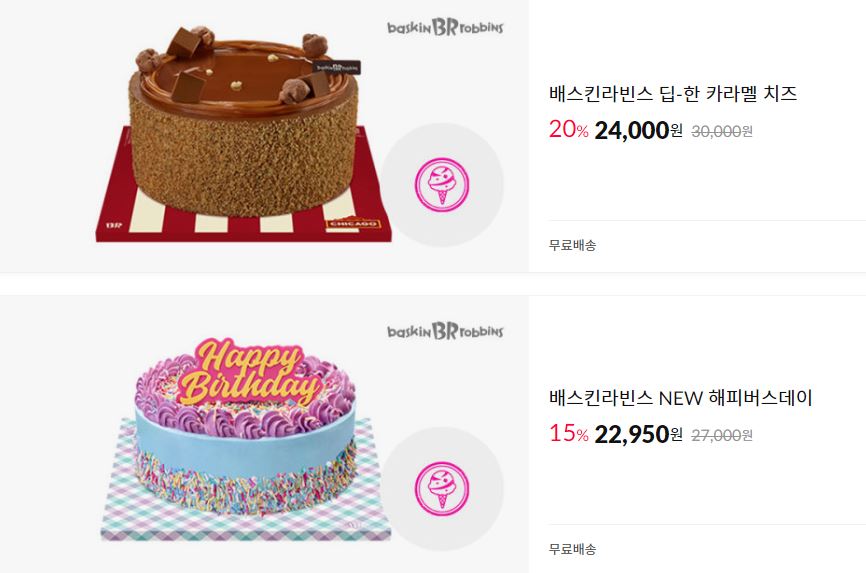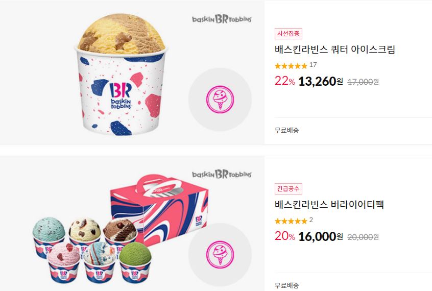 배스킨라빈스 다양한 제품을 할인 판매하네요.