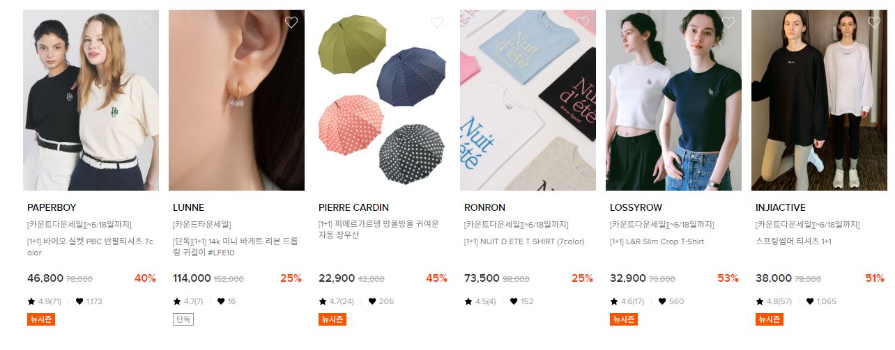 할인 품목 : 의류, 가전, 화장품 등