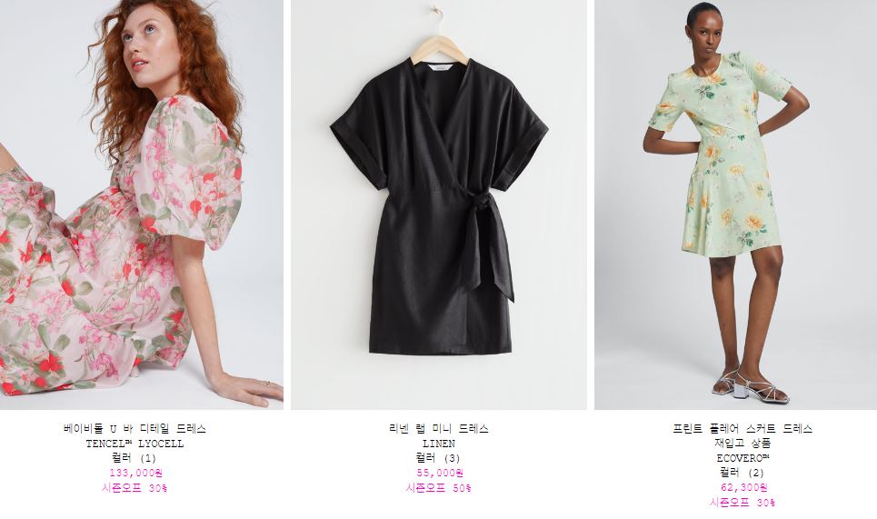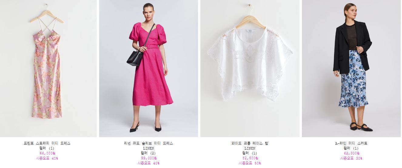 할인 품목 : 원피스, 샌들, 티셔츠 등
