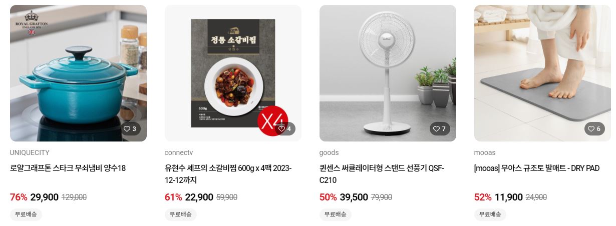 할인 품목 : 의류, 가전, 식품 등