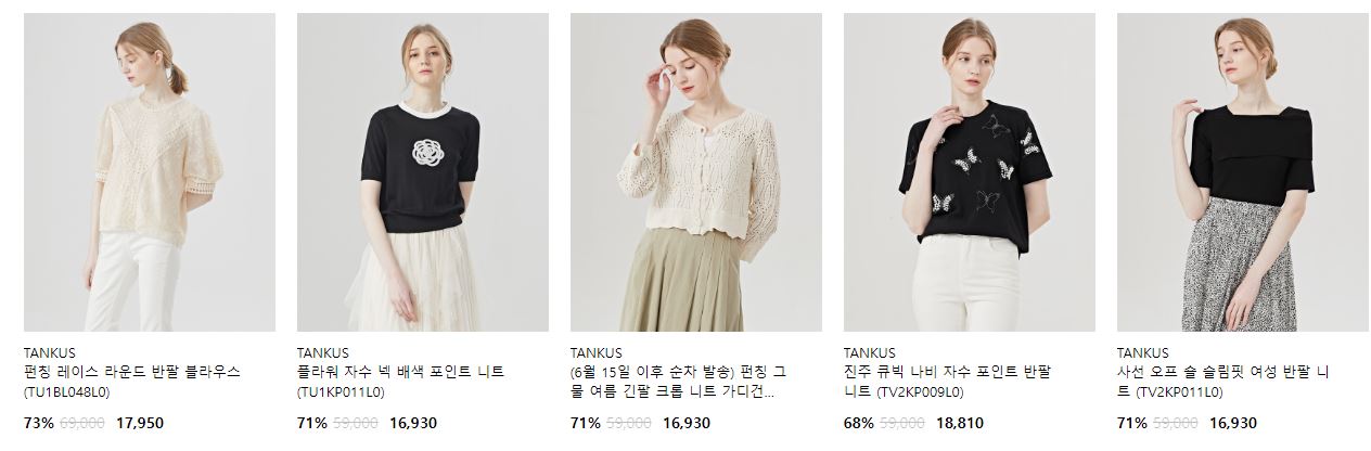할인 품목 : 티셔츠, 스커트 등