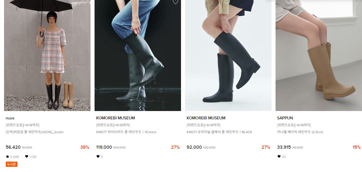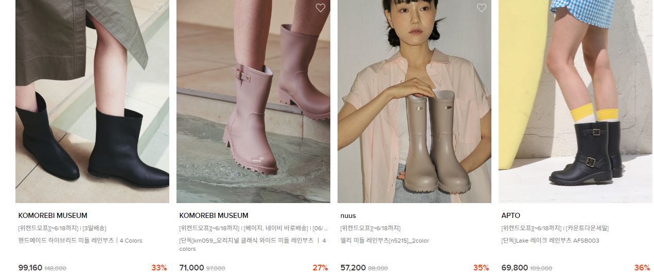 할인 품목 : 레인부츠, 샌들 등