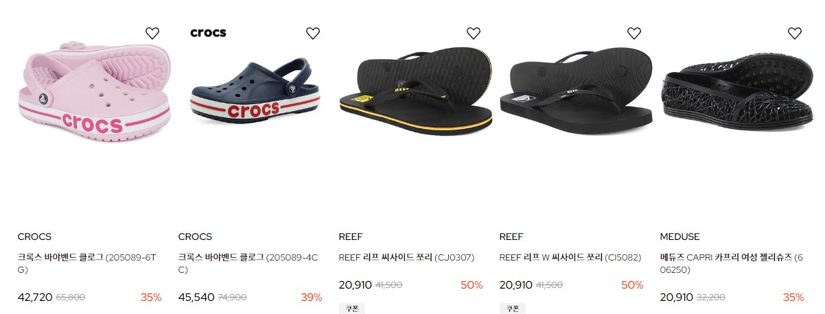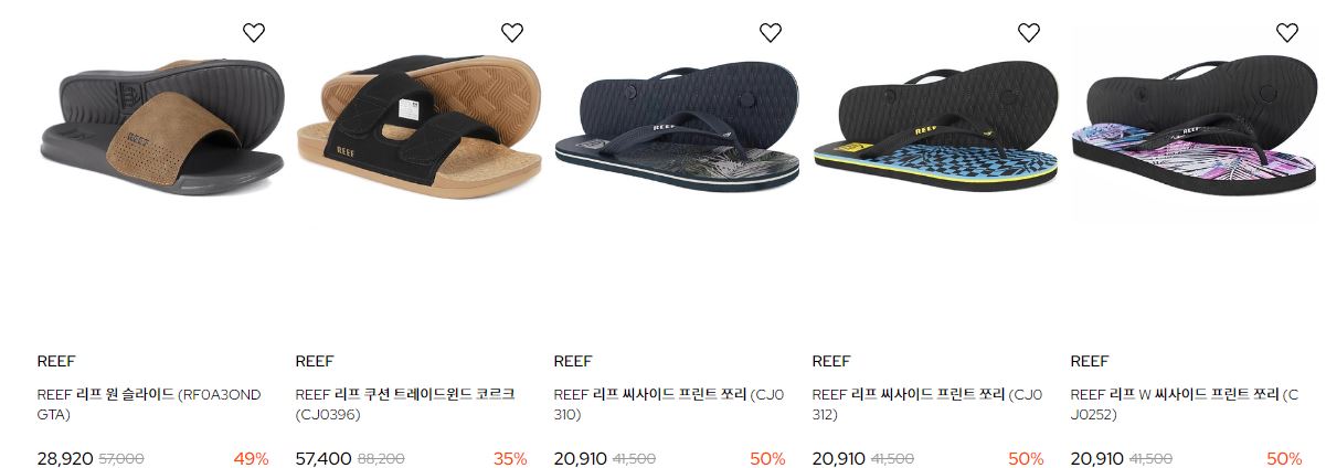 할인 품목 : 샌들, 모자, 티셔츠 등