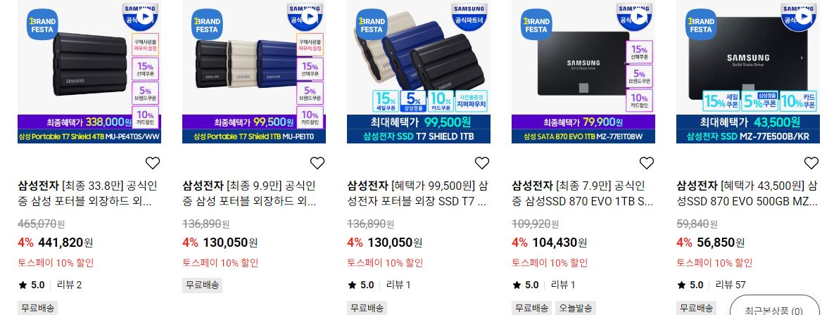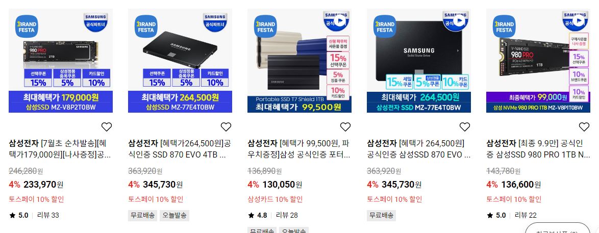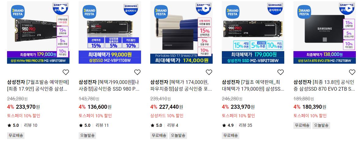 삼성전자 메모리/저장장치 세일 정보 포스팅입니다.