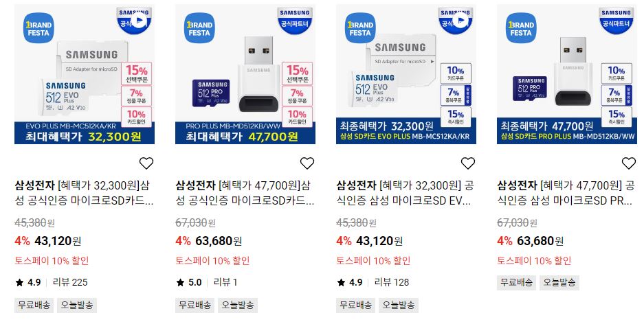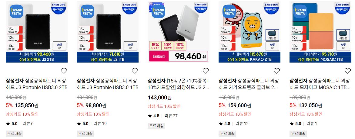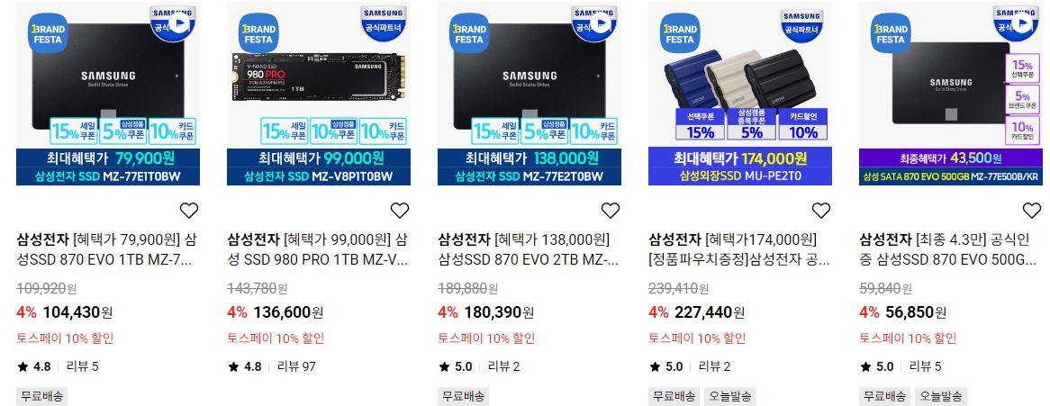 할인 품목 : SSD, SD카드, 외장하드 등