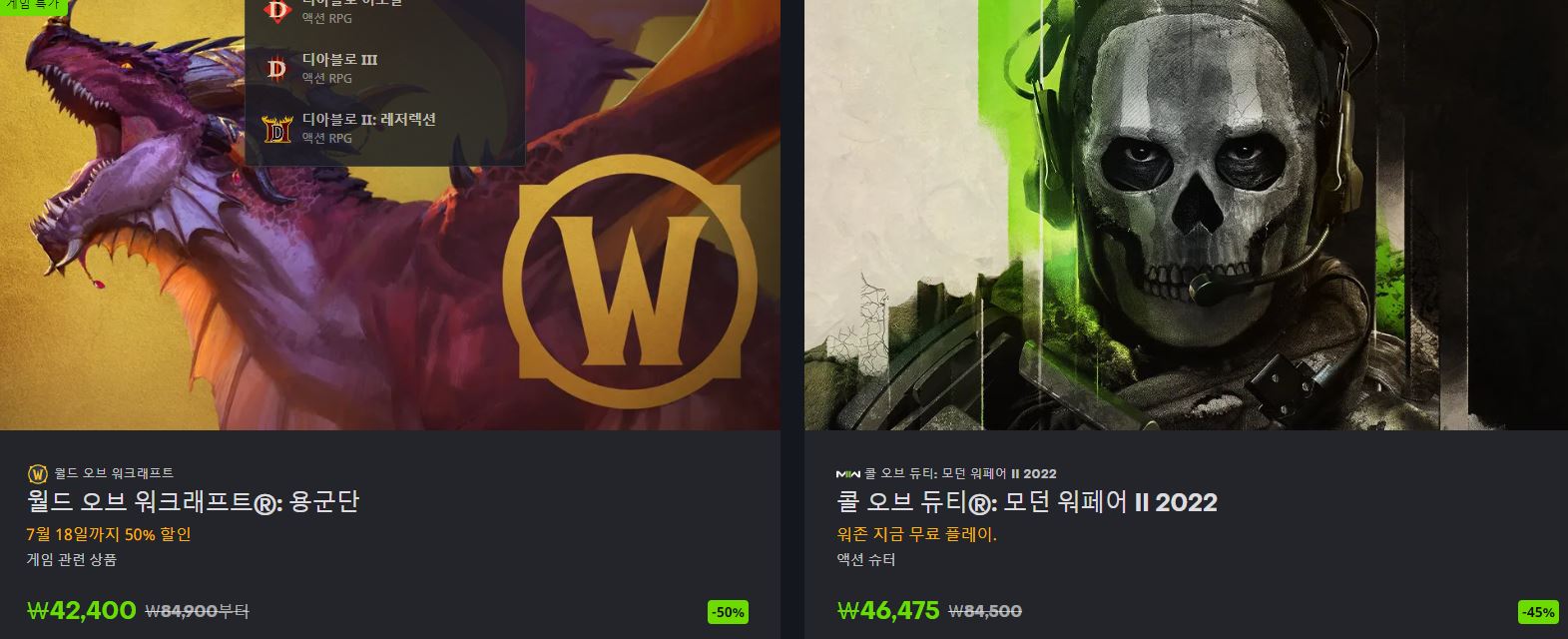 할인 게임 : 디아블로2 레제렉션, 콜오브듀티 시리즈 등