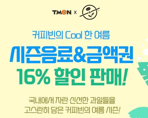 커피빈 시즌음료&금액권 16% 할인