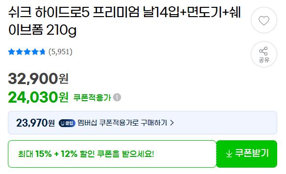 쉬크 하이드로5 프리미엄 세트 할인 정보 포스팅입니다.