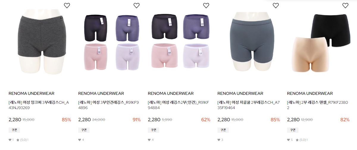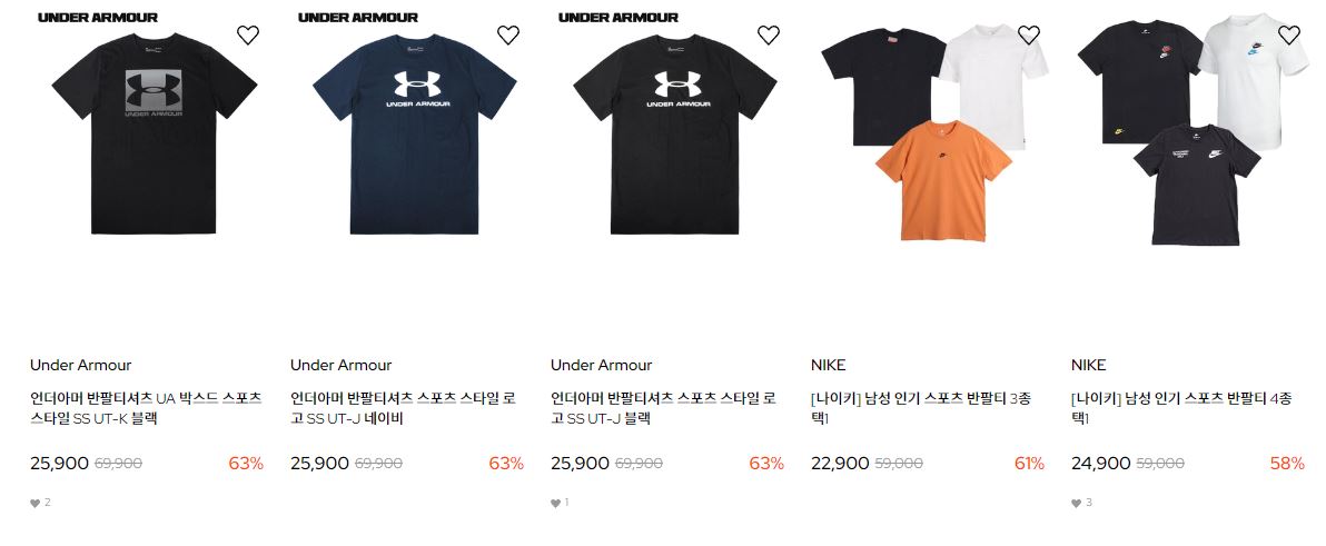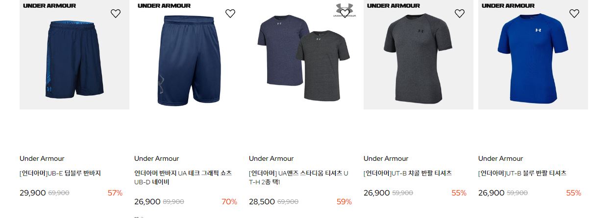 할인 품목 : 언더웨어, 티셔츠, 모자 등