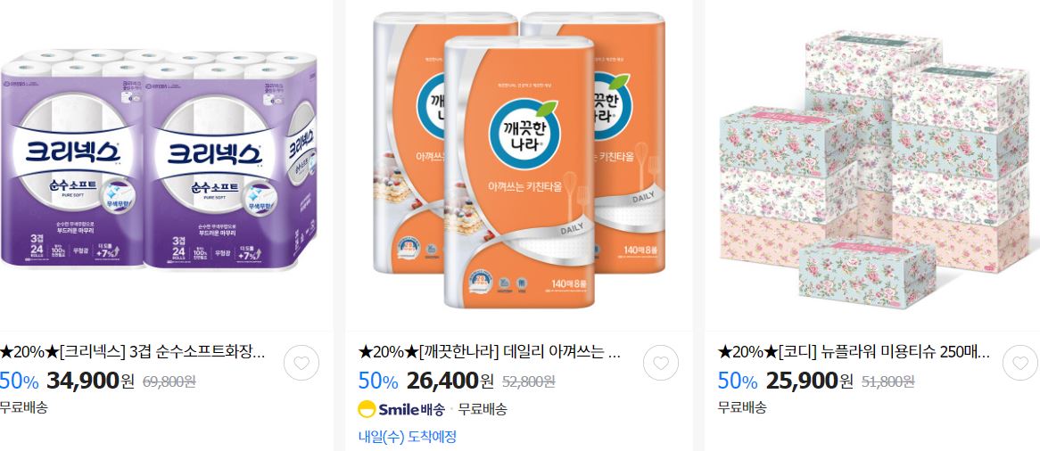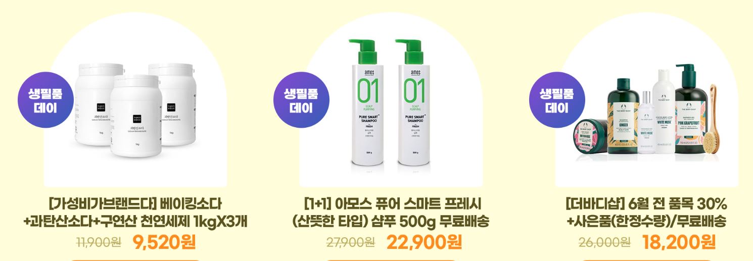 할인 품목 : 샴푸, 면도기, 화장지 등