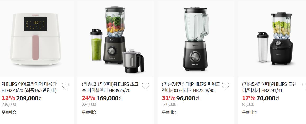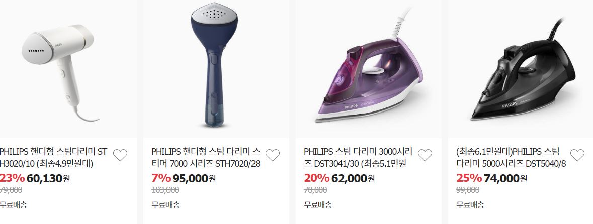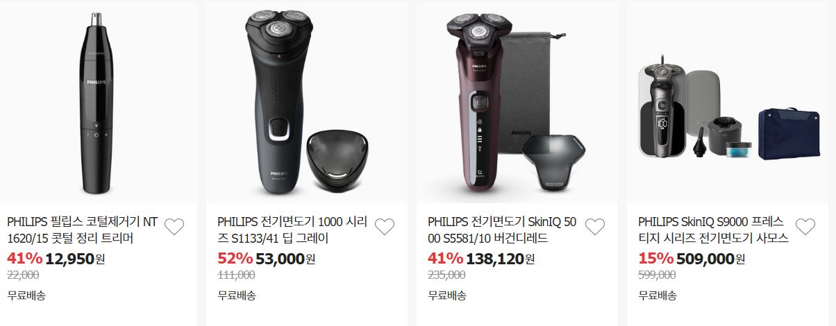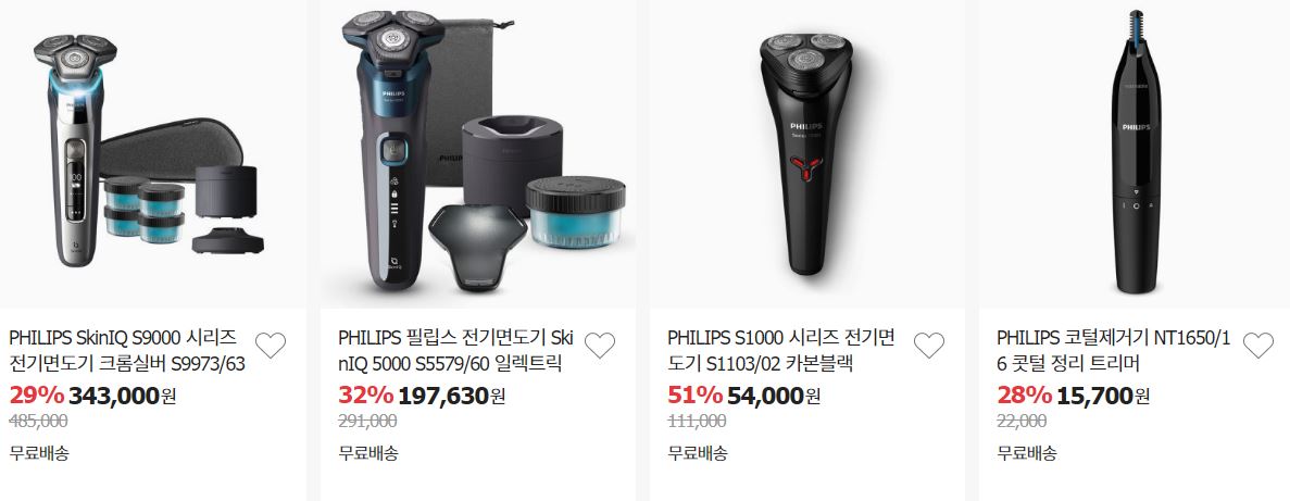 할인 품목 : 면도기, 커피머신, 다리미 등