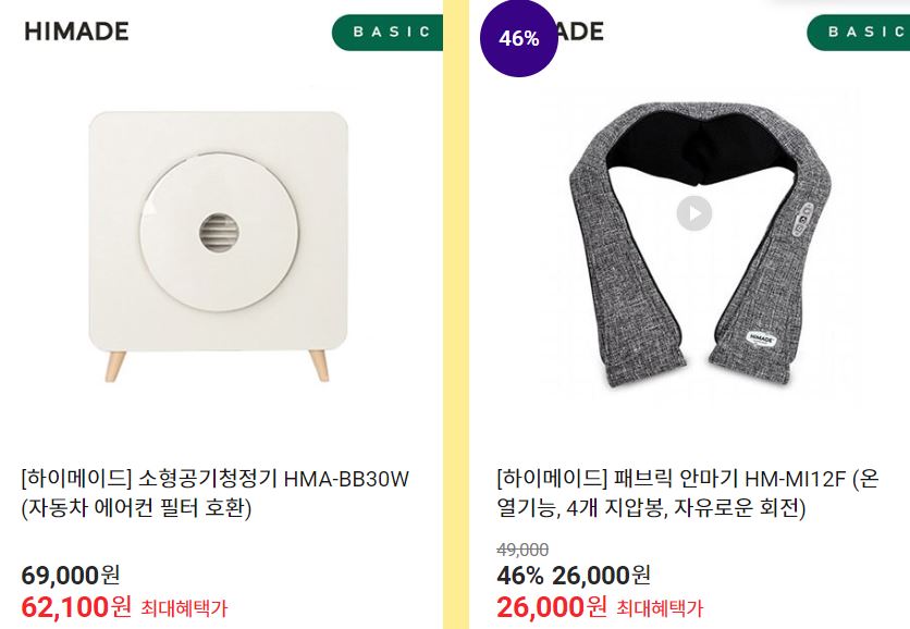 하이메이드 다양한 제품을 할인 판매하네요.