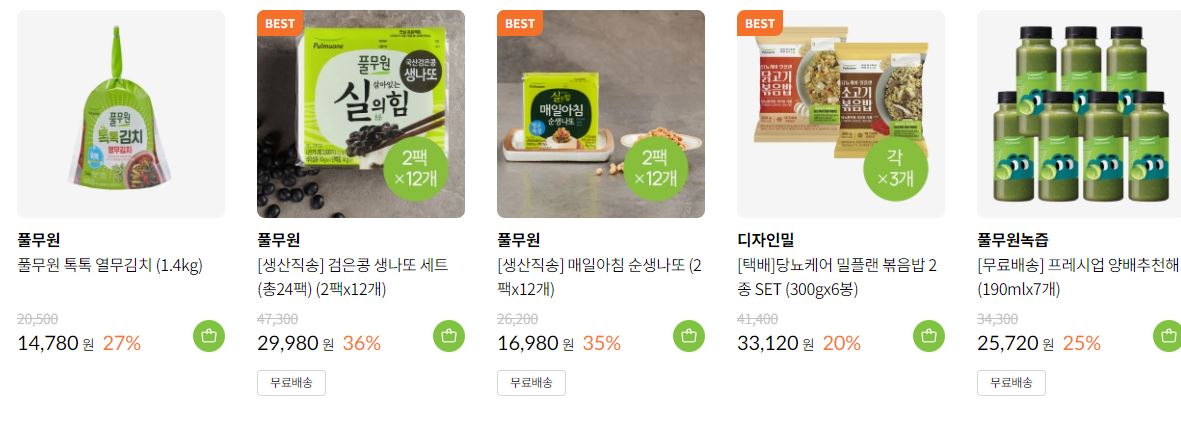 풀무원 다양한 제품을 할인 판매하네요.