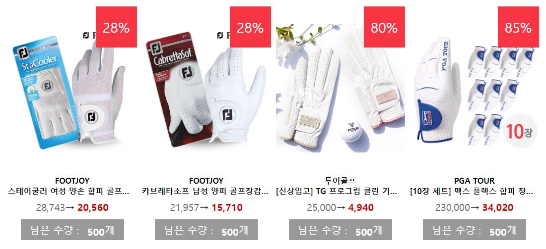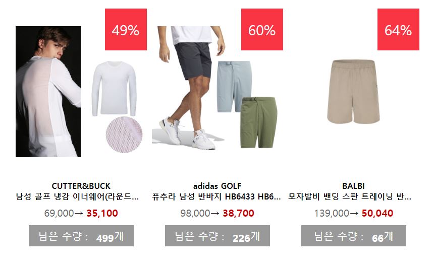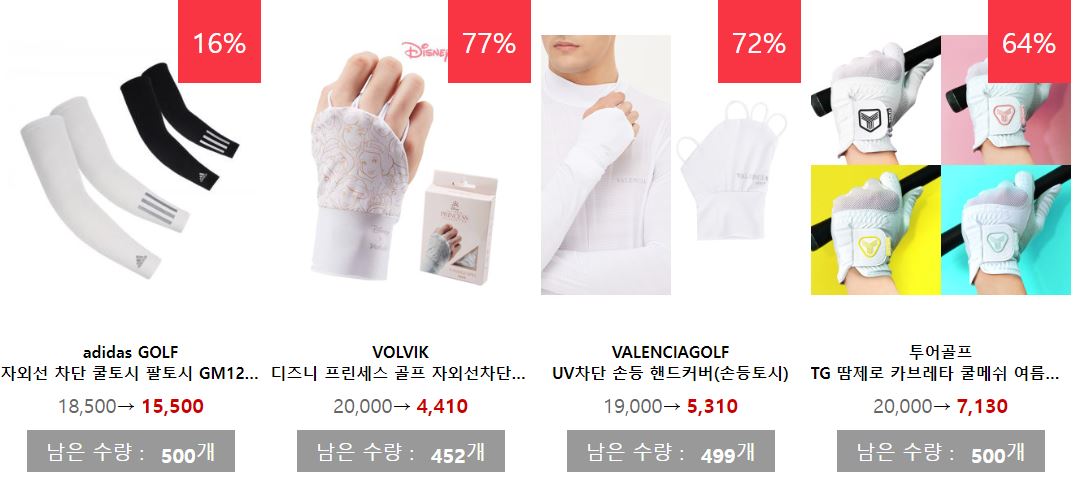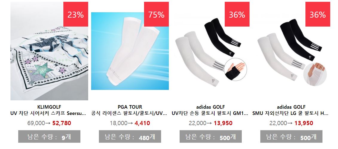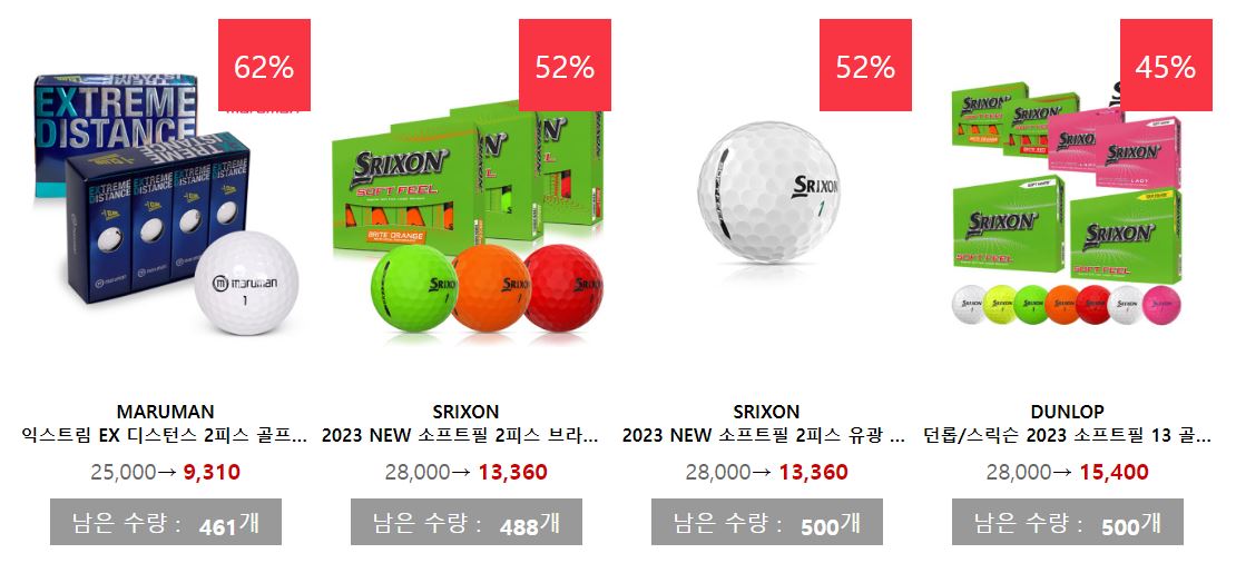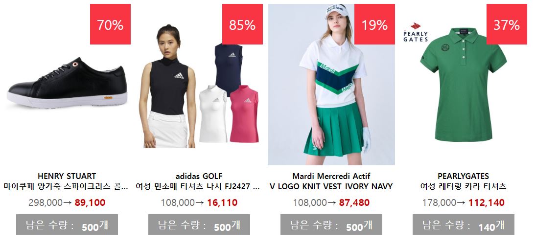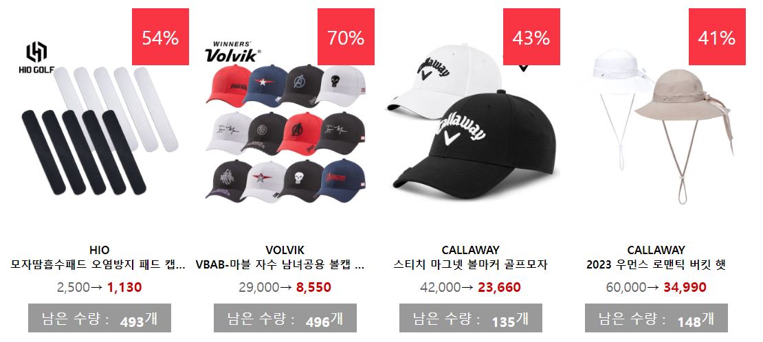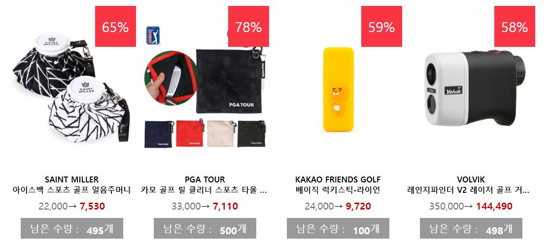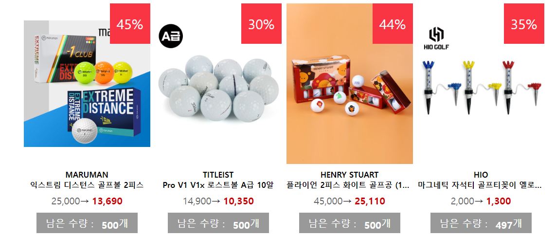 할인 품목 : 골프공, 의류, 모자 등