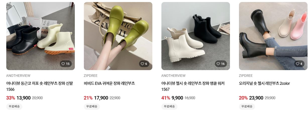 할인 품목 : 장화, 우산 등