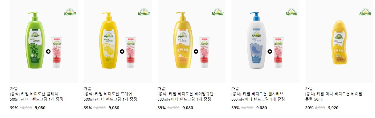 카밀 다양한 제품을 할인 판매하네요.