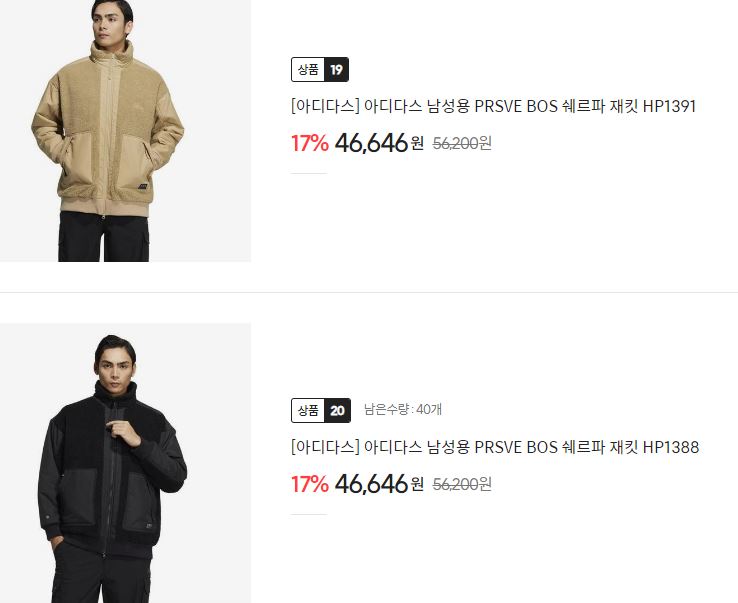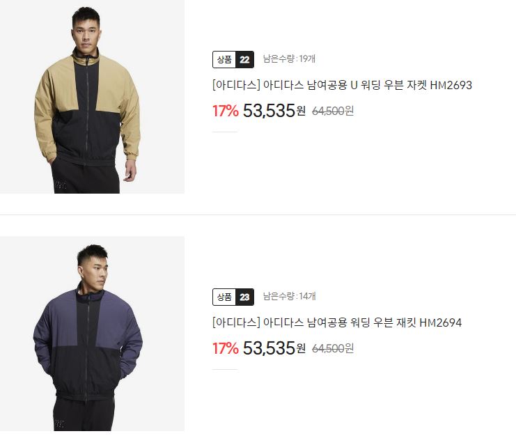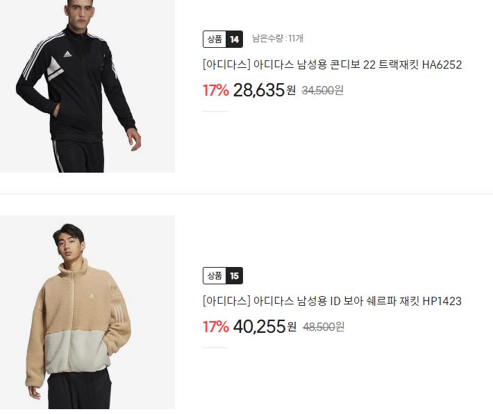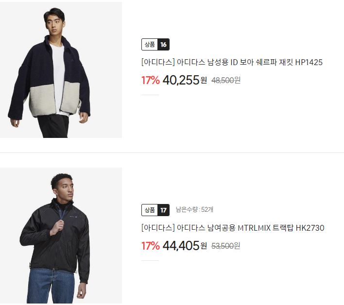 할인 품목 : 트랙탑, 재킷, 팬츠 등
