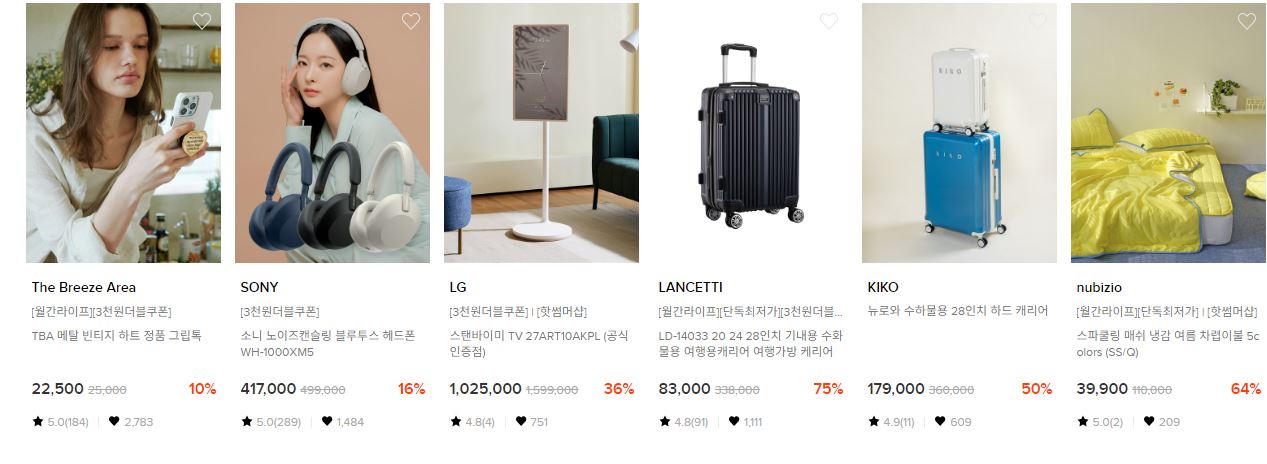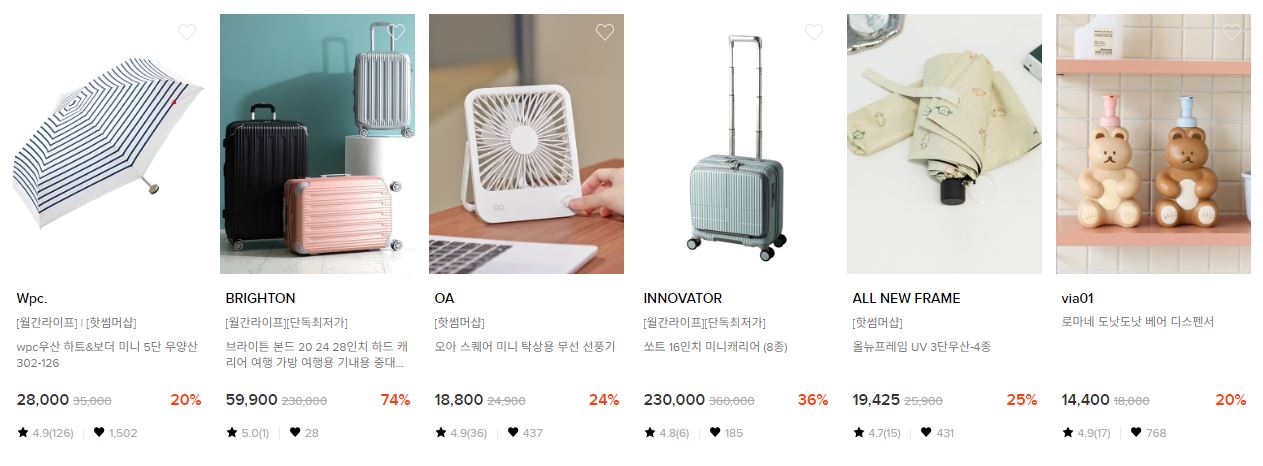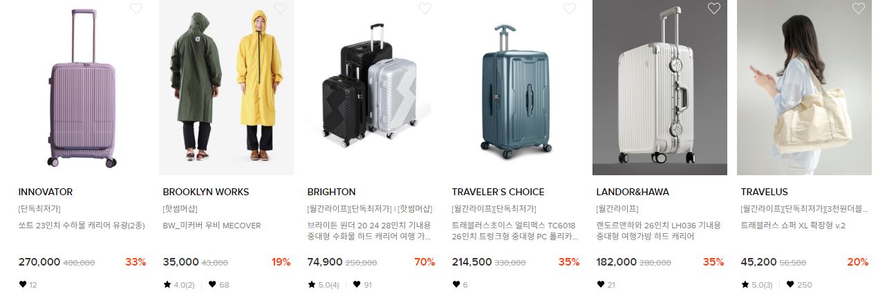 할인 품목 : 캐리어, 이불, 텀블러 등