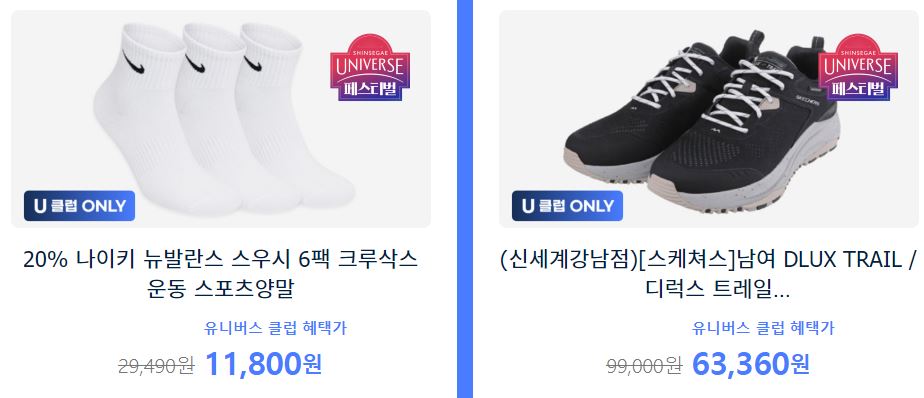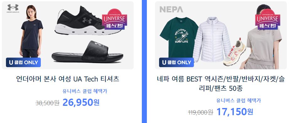 할인 품목 : 의류, 신발 등