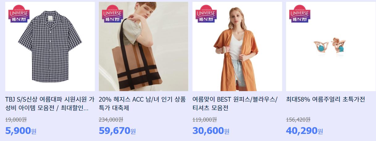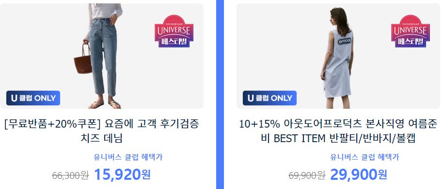 할인 품목 : 화장품, 의류, 언더웨어 등