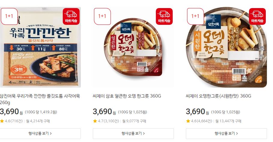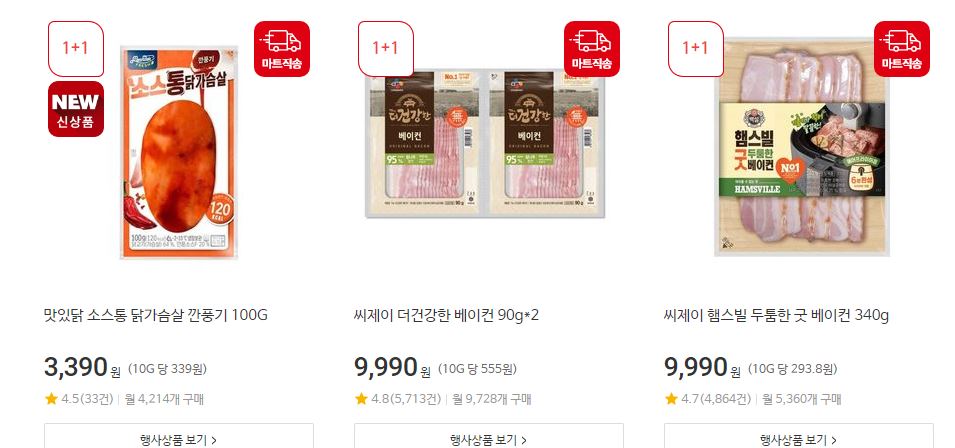 이벤트 품목 : 만두, 짜조, 베이컨 등