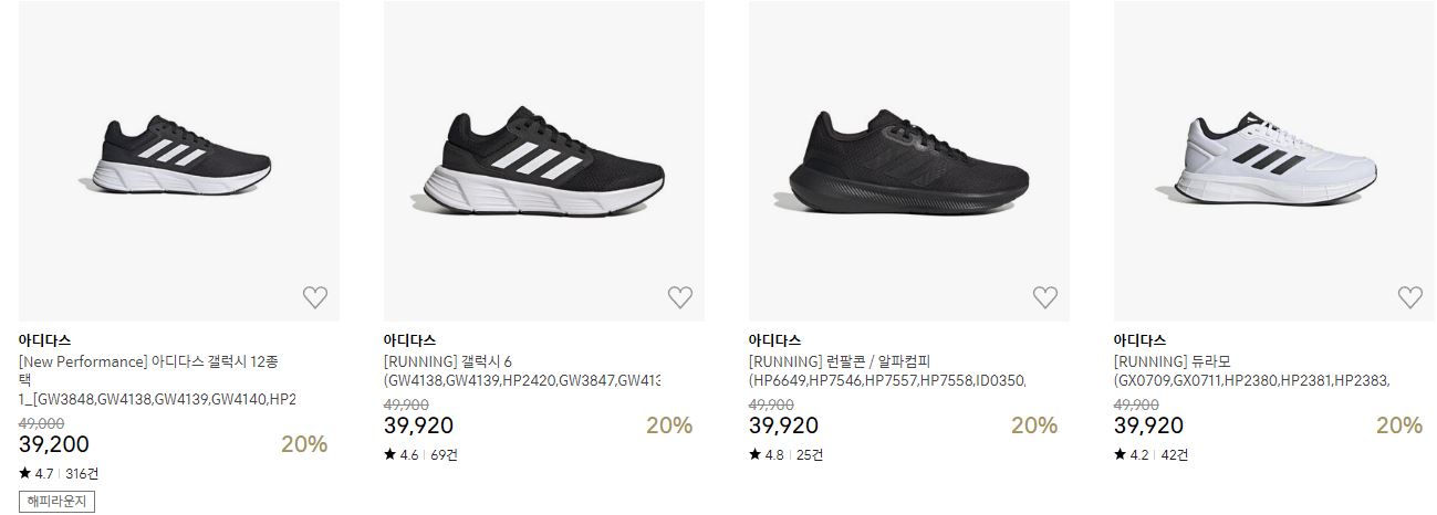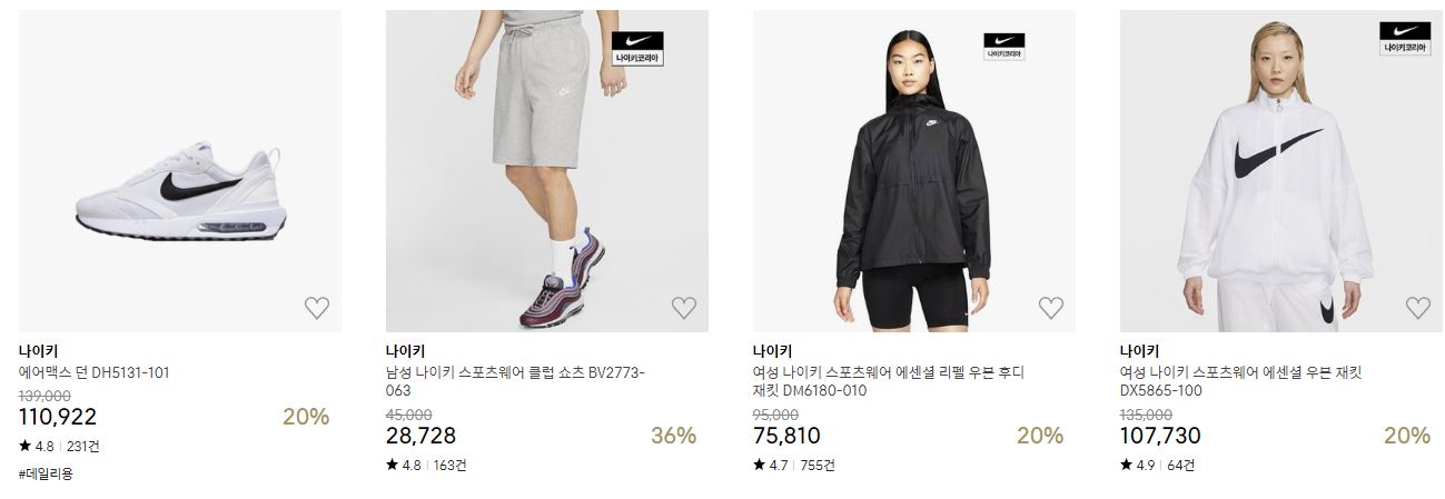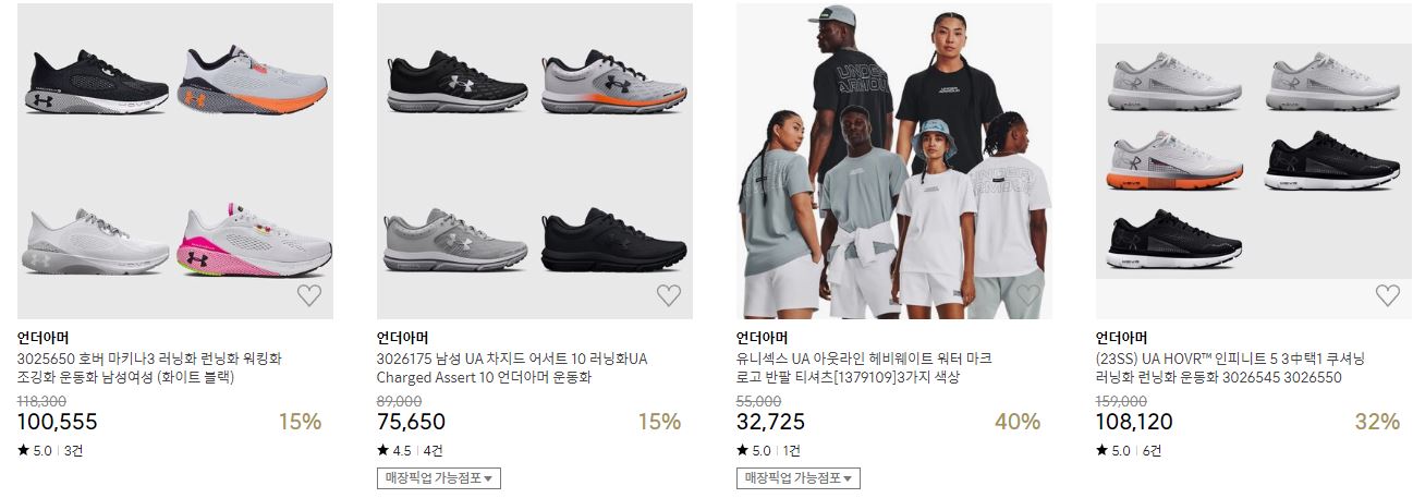 할인 품목 : 티셔츠, 팬츠, 운동화 등