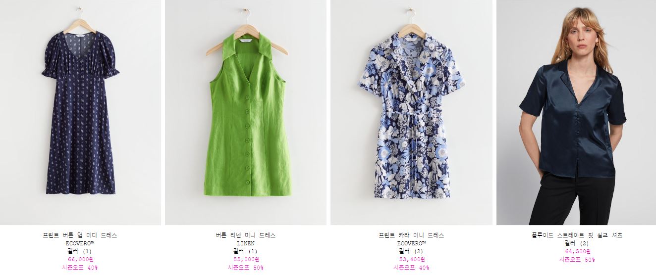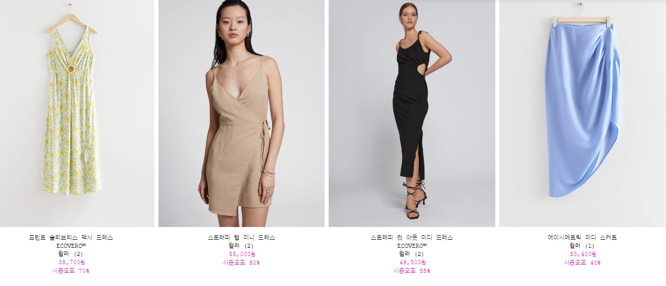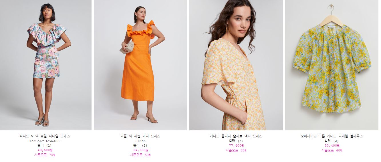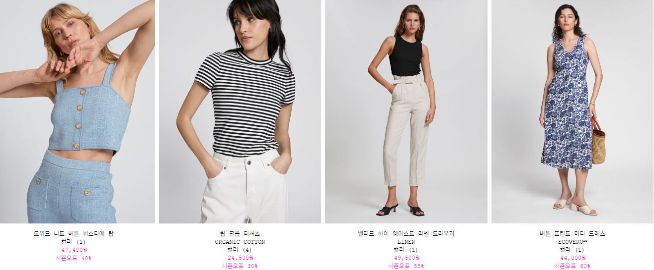 할인 품목 : 원피스, 티셔츠, 스커트 등