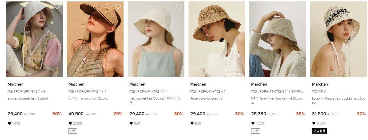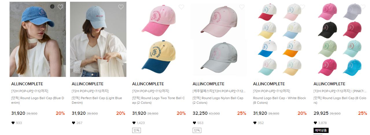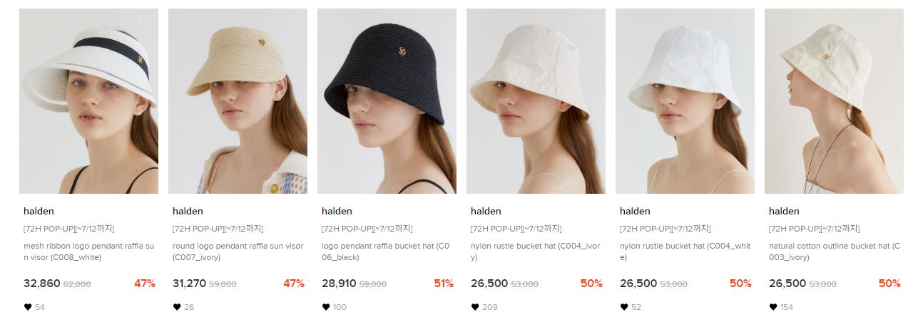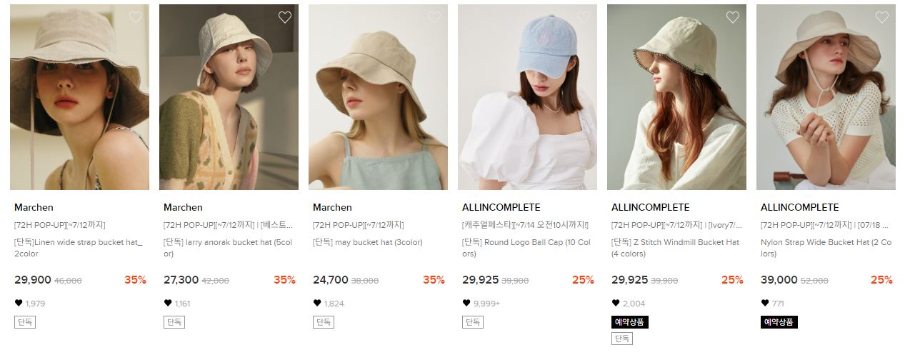할인 품목 : 버킷햇, 볼캡 등