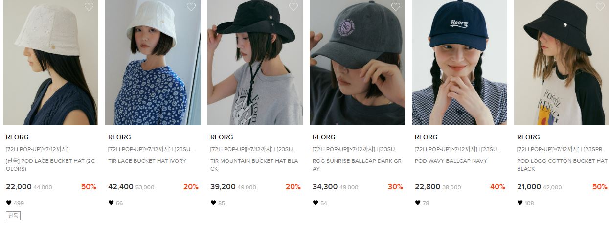 할인 품목 : 버킷햇, 볼캡 등