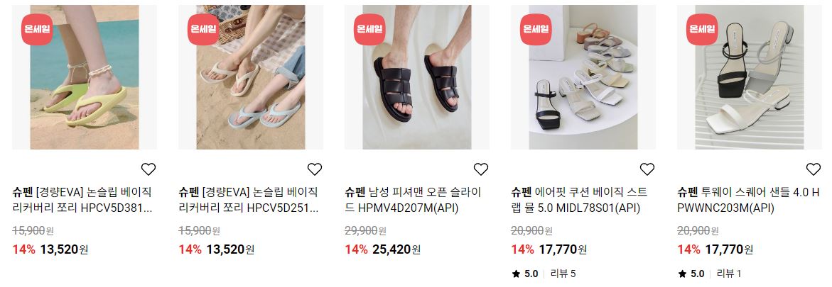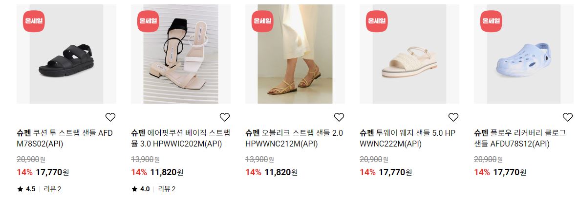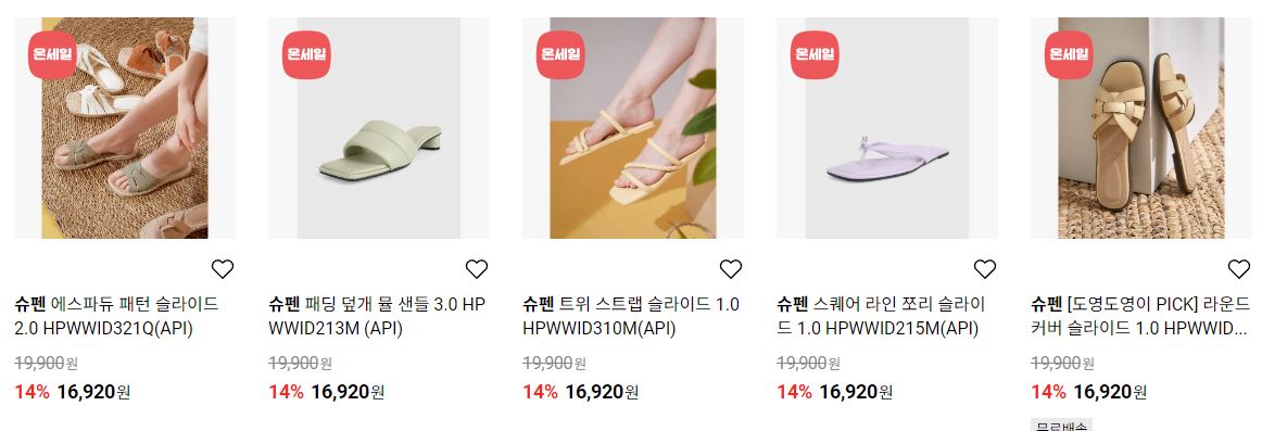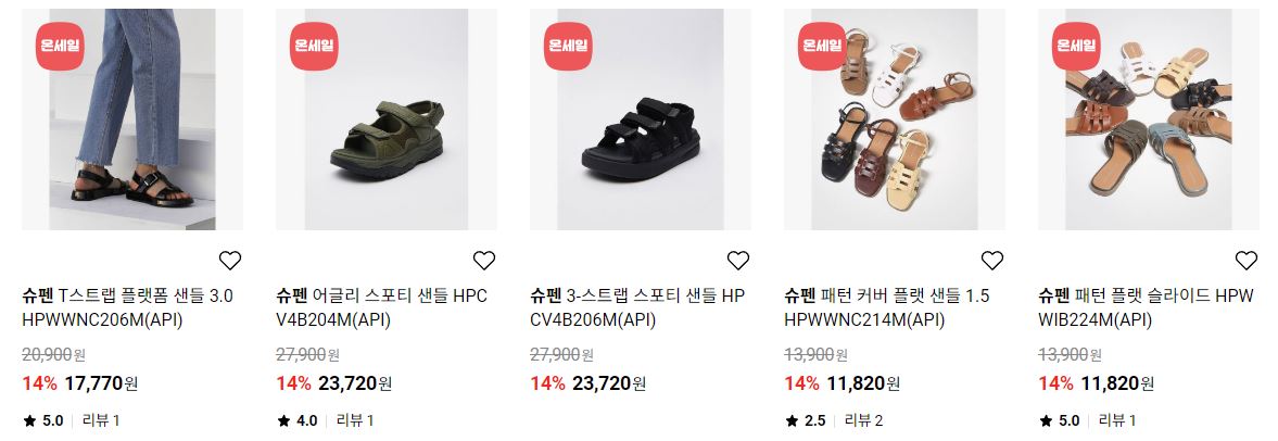 할인 품목 : 샌들, 슬리퍼, 가방 등