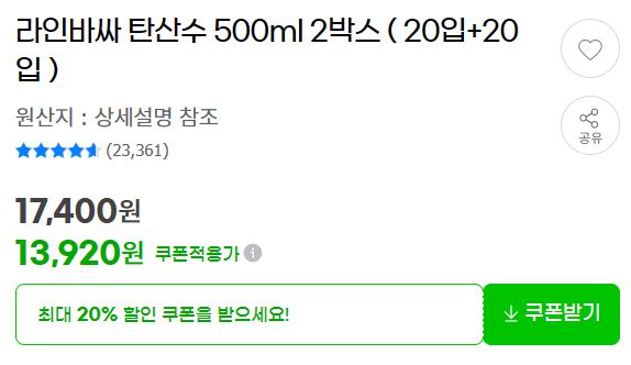 라인바싸 탄산수 500ml 2박스을 할인 판매하네요.
