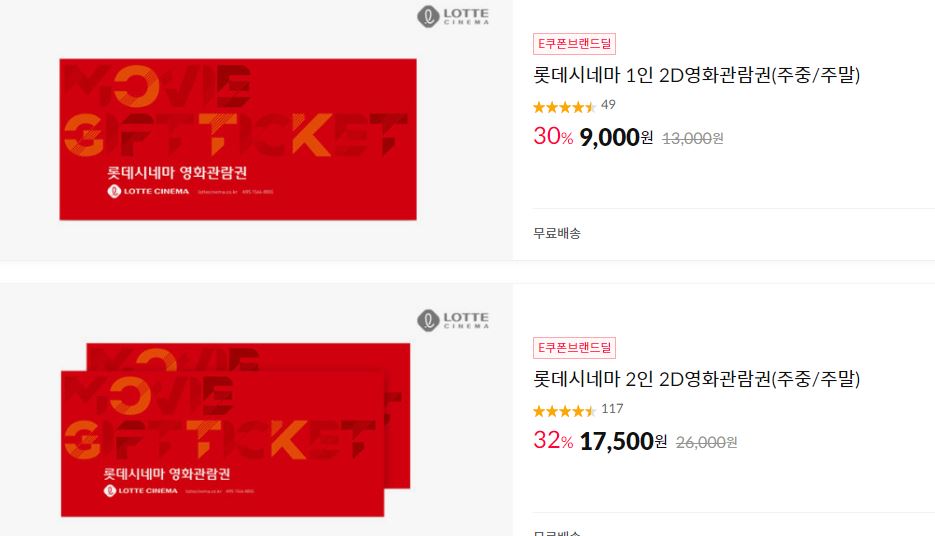 롯데시네마 다양한 제품을 할인 판매하네요.