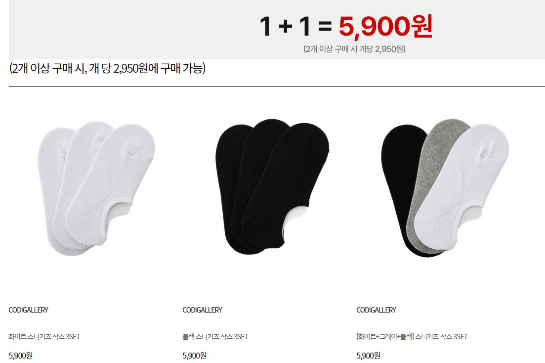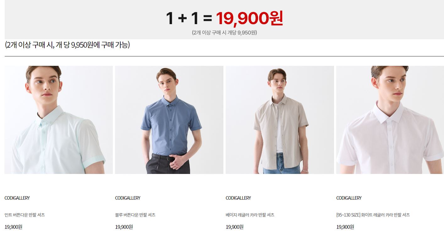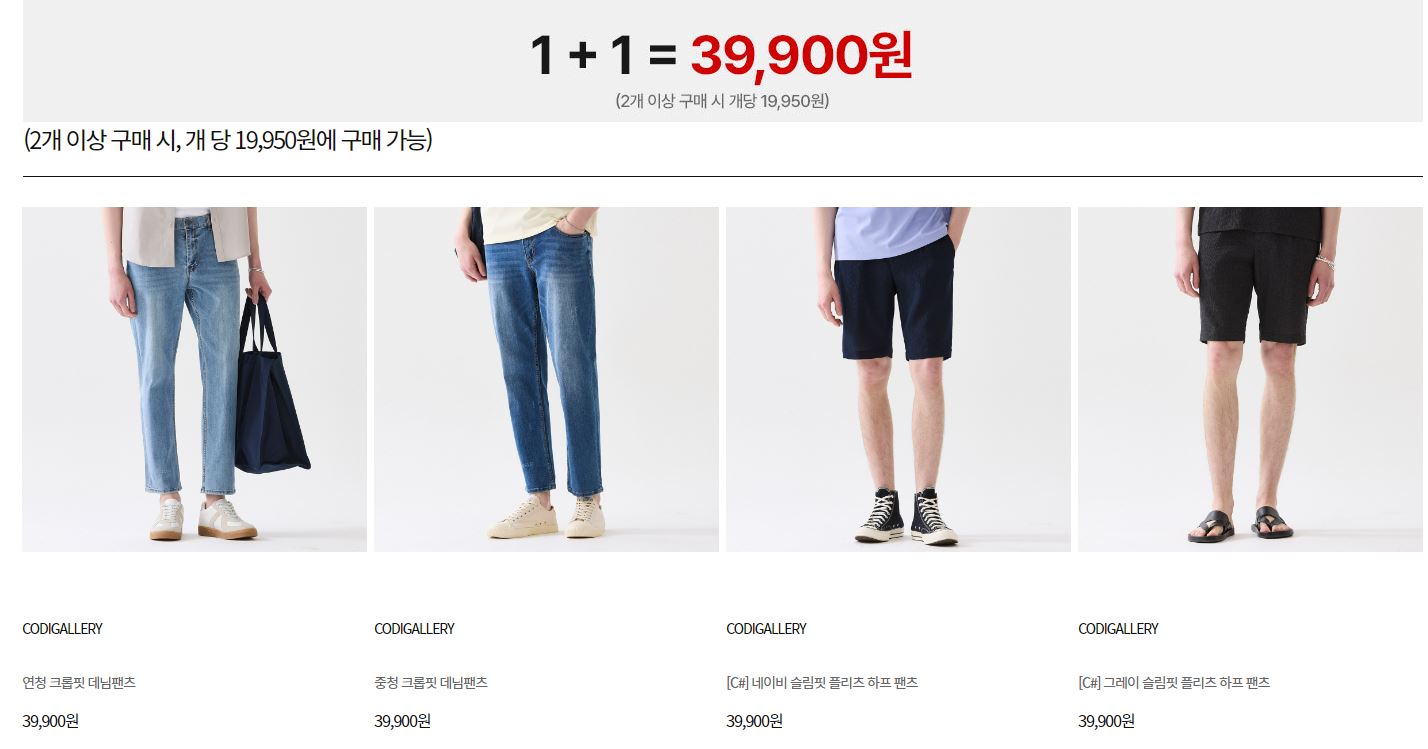 코디갤러리 다양한 제품을 1+1 판매하네요.