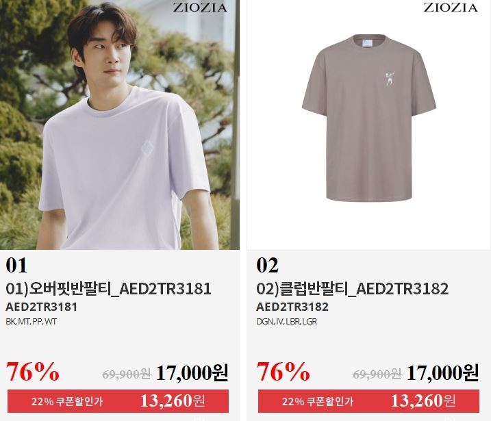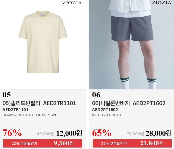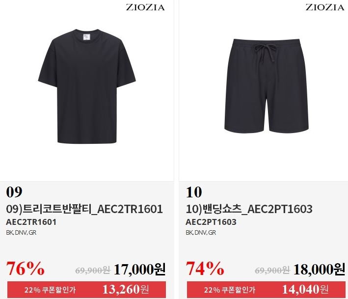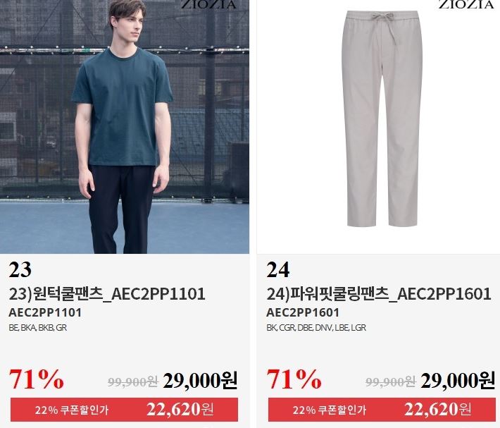 할인 품목 : 티셔츠, 팬츠 등