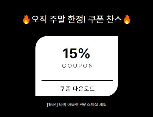 타미 스페셜 세일 + 15% 추가 쿠폰 정보 포스팅입니다.