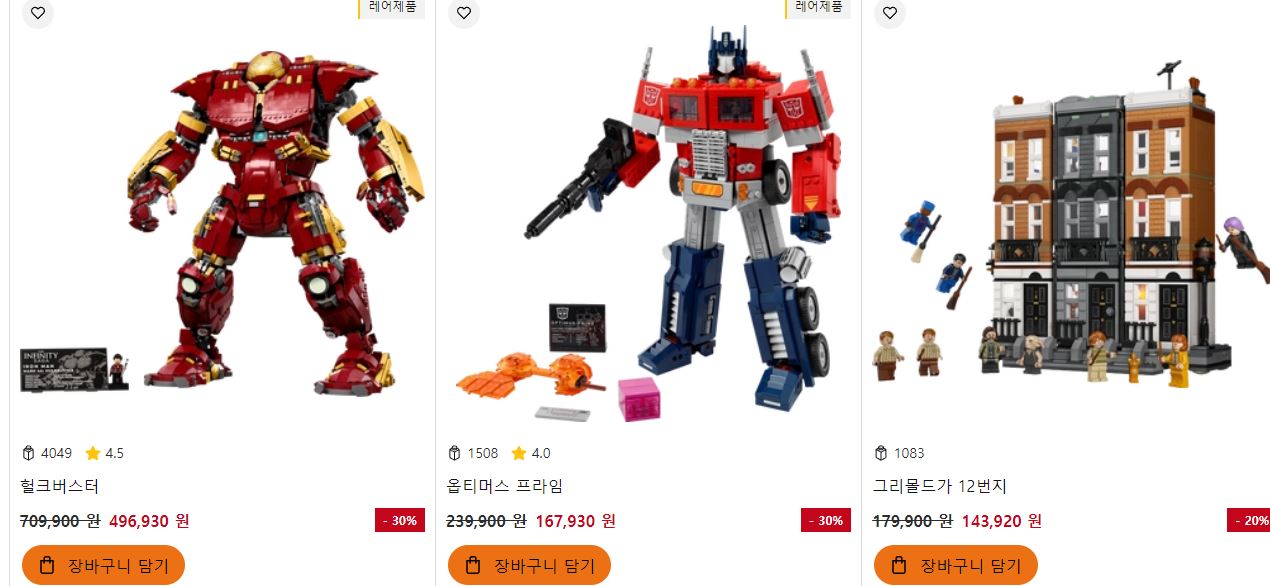 레고 다양한 제품을 할인 판매하네요.