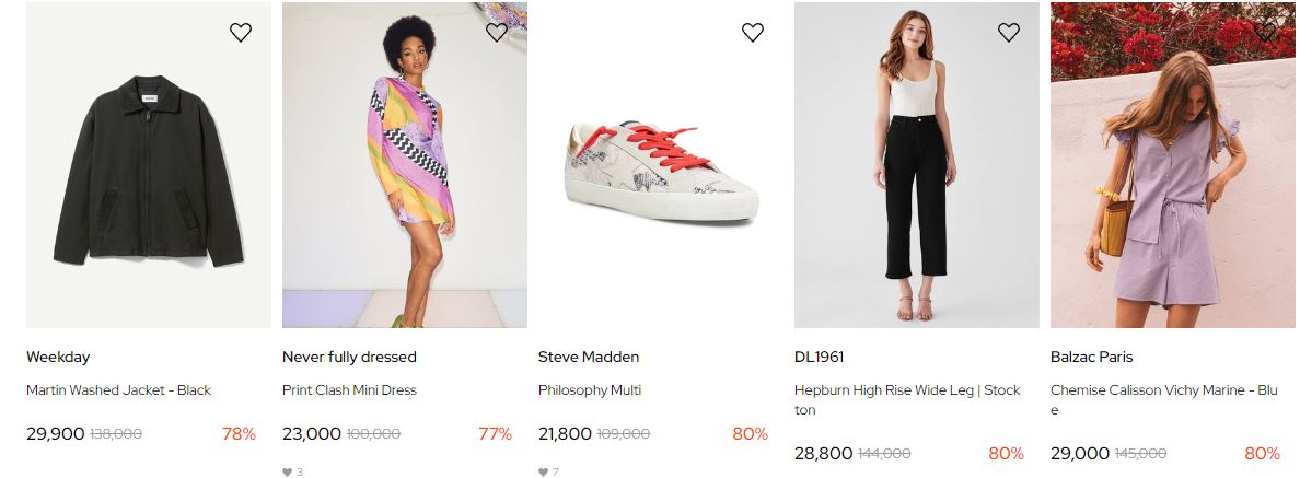 할인 품목 : 샌들, 티셔츠, 팬츠 등