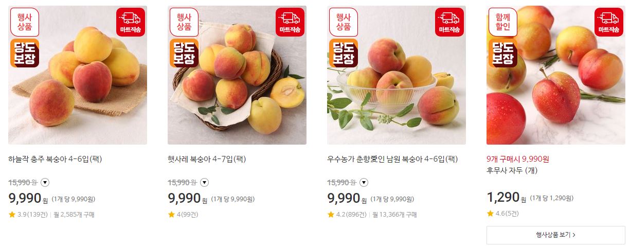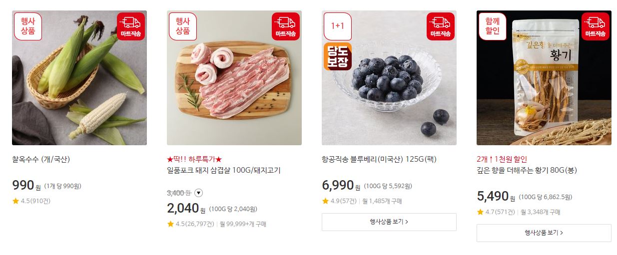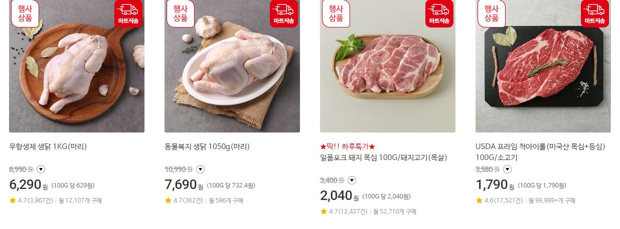 할인 품목 : 생닭, 삼겹살, 과일 등
