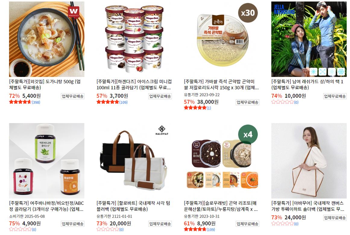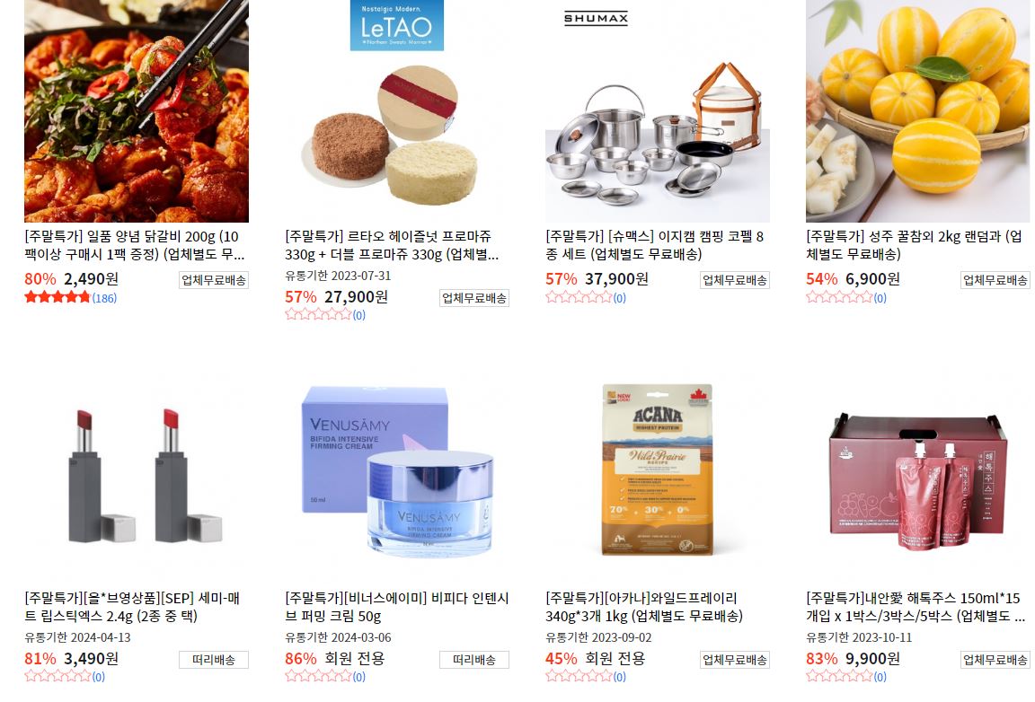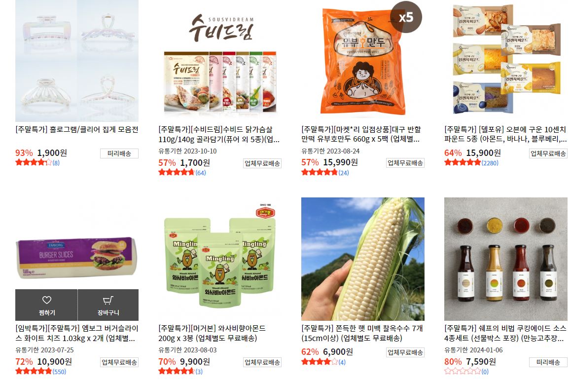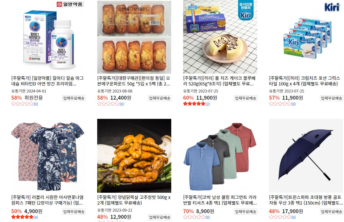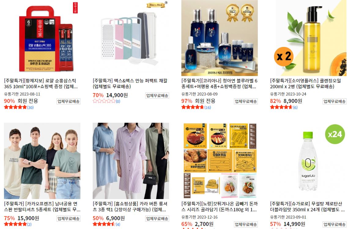 할인 품목 : 식품, 의류, 화장품 등