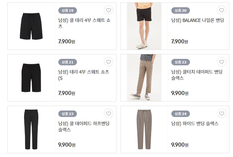 할인 품목 : 티셔츠, 팬츠 등