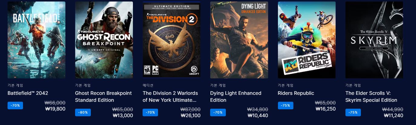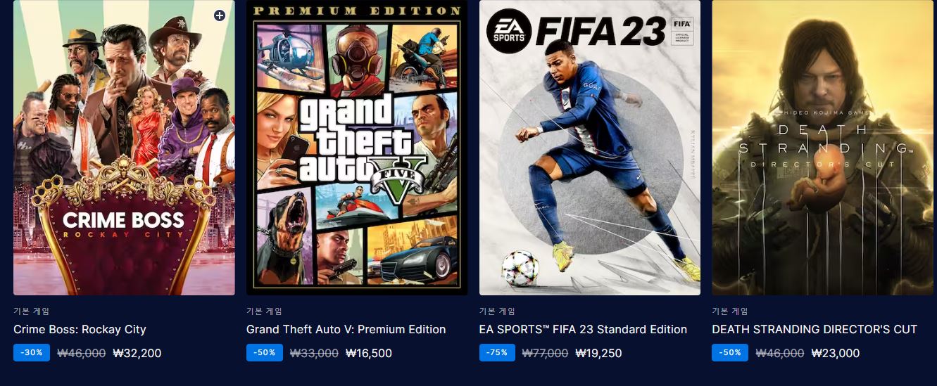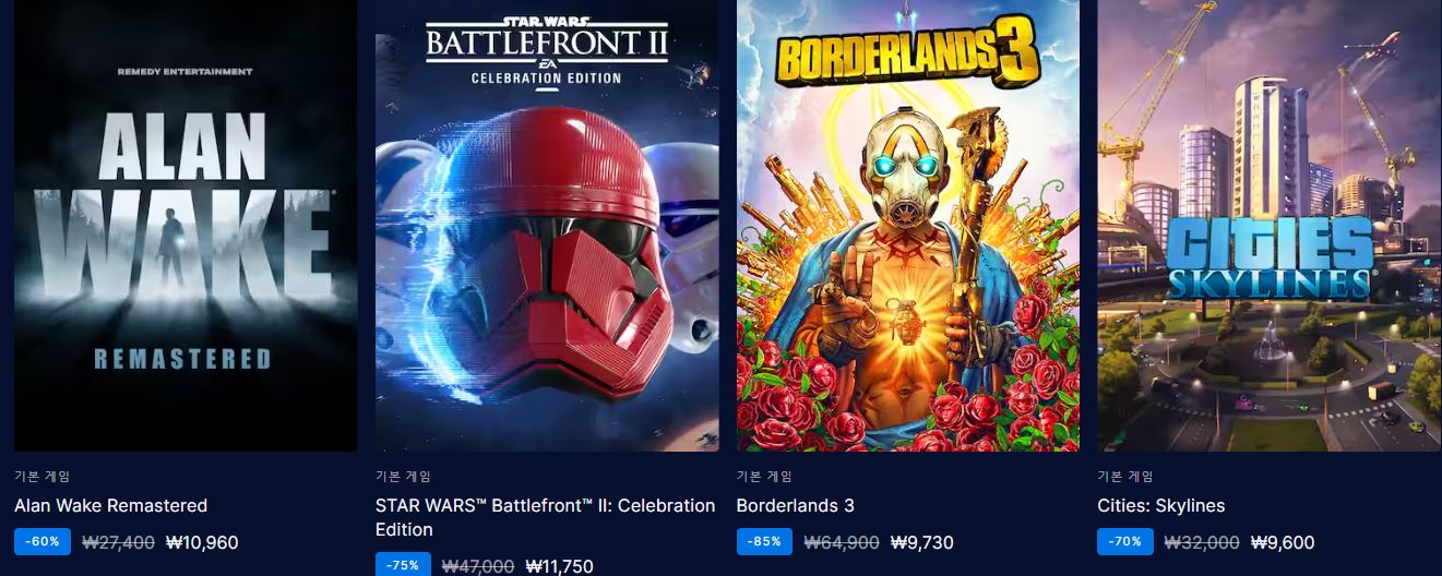 에픽게임즈 다양한 게임을 할인 판매하네요.