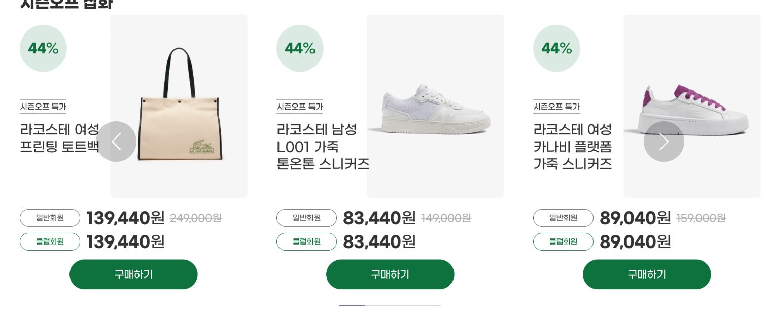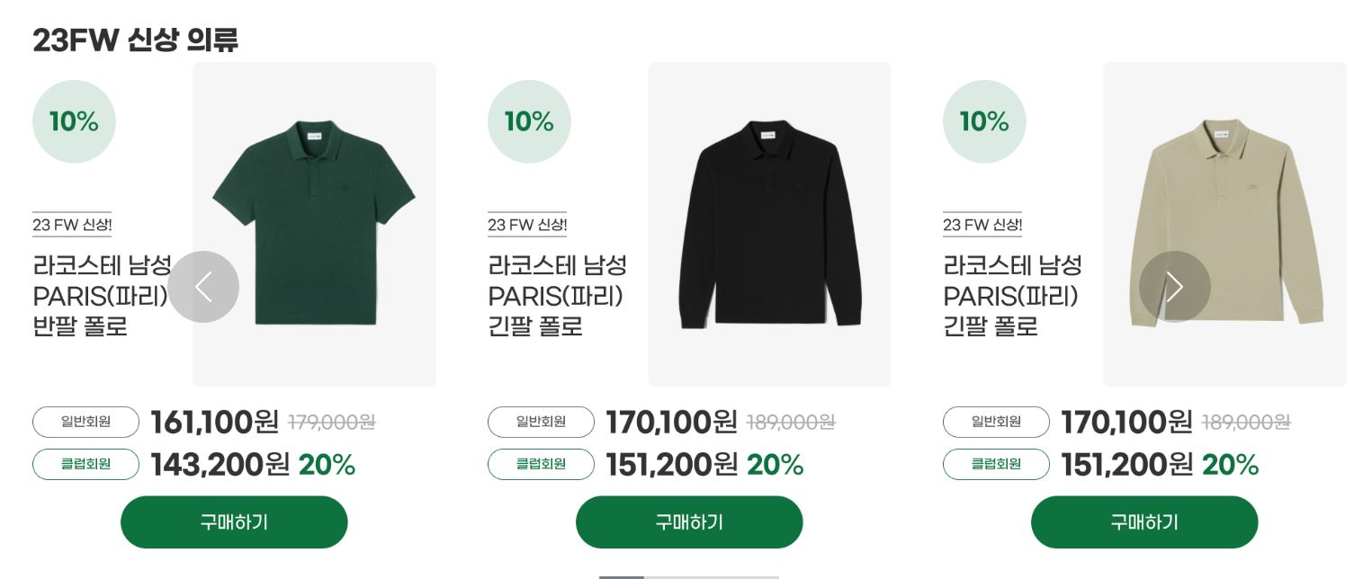 라코스테 다양한 제품을 할인 판매하네요.