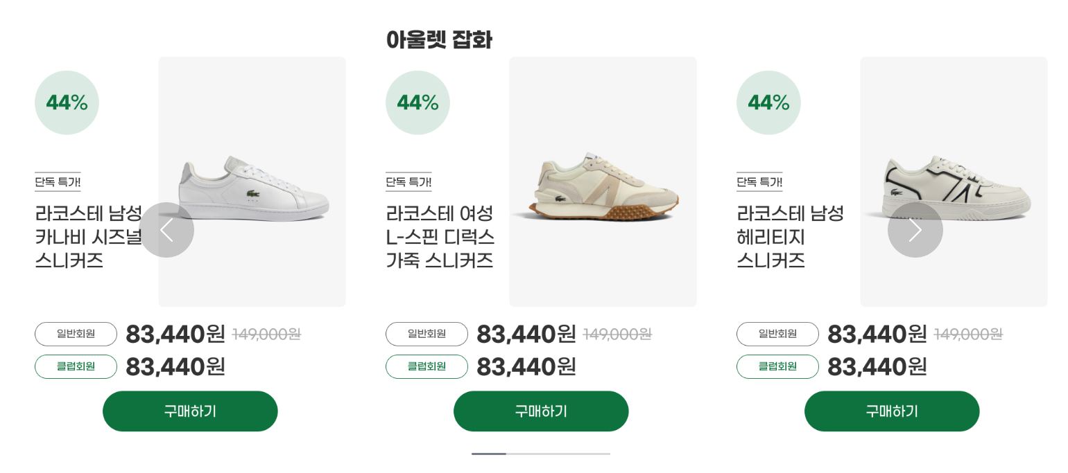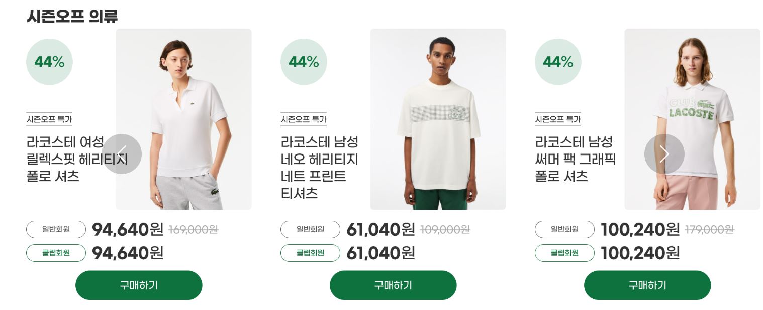 라코스테 다양한 제품을 할인 판매하네요.