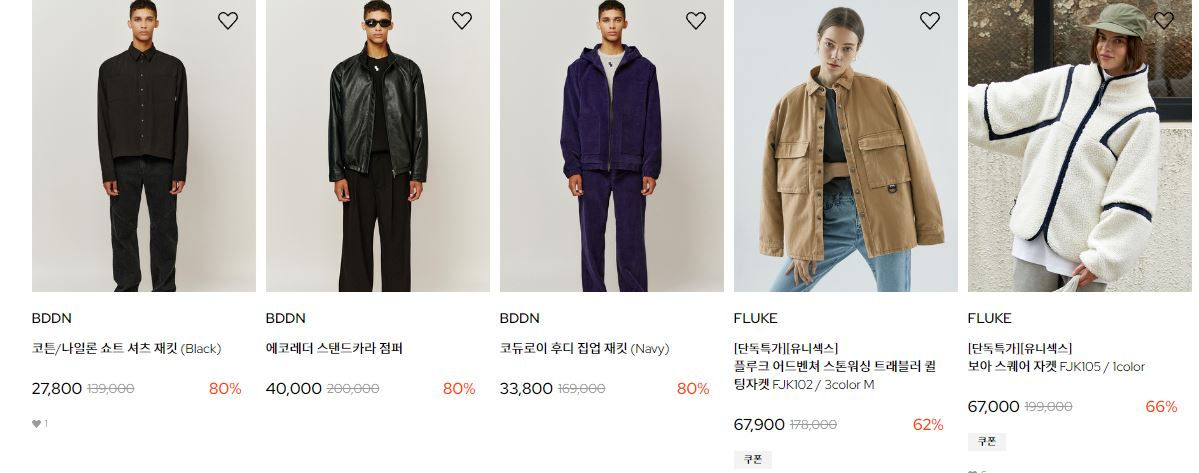 할인 품목 : 의류, 신발, 모자 등
