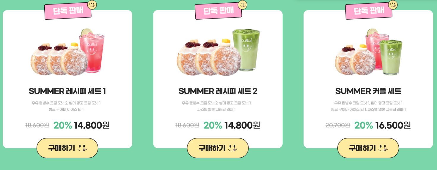 할인 품목 : 서머 레시피 세트, 아메리카노, 금액권 등