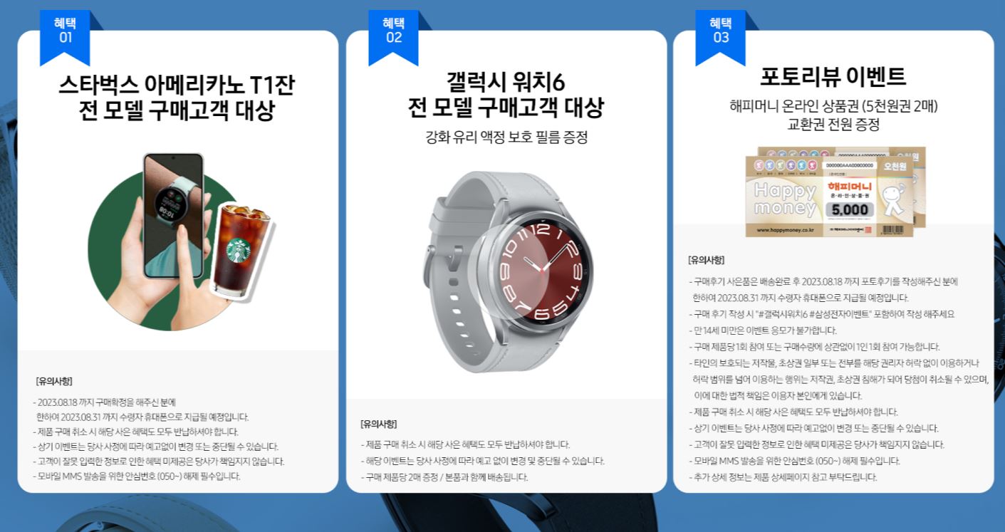 갤럭시워치6/갤럭시탭S9 시리즈 사전 예약판매 이벤트 정보 포스팅입니다.